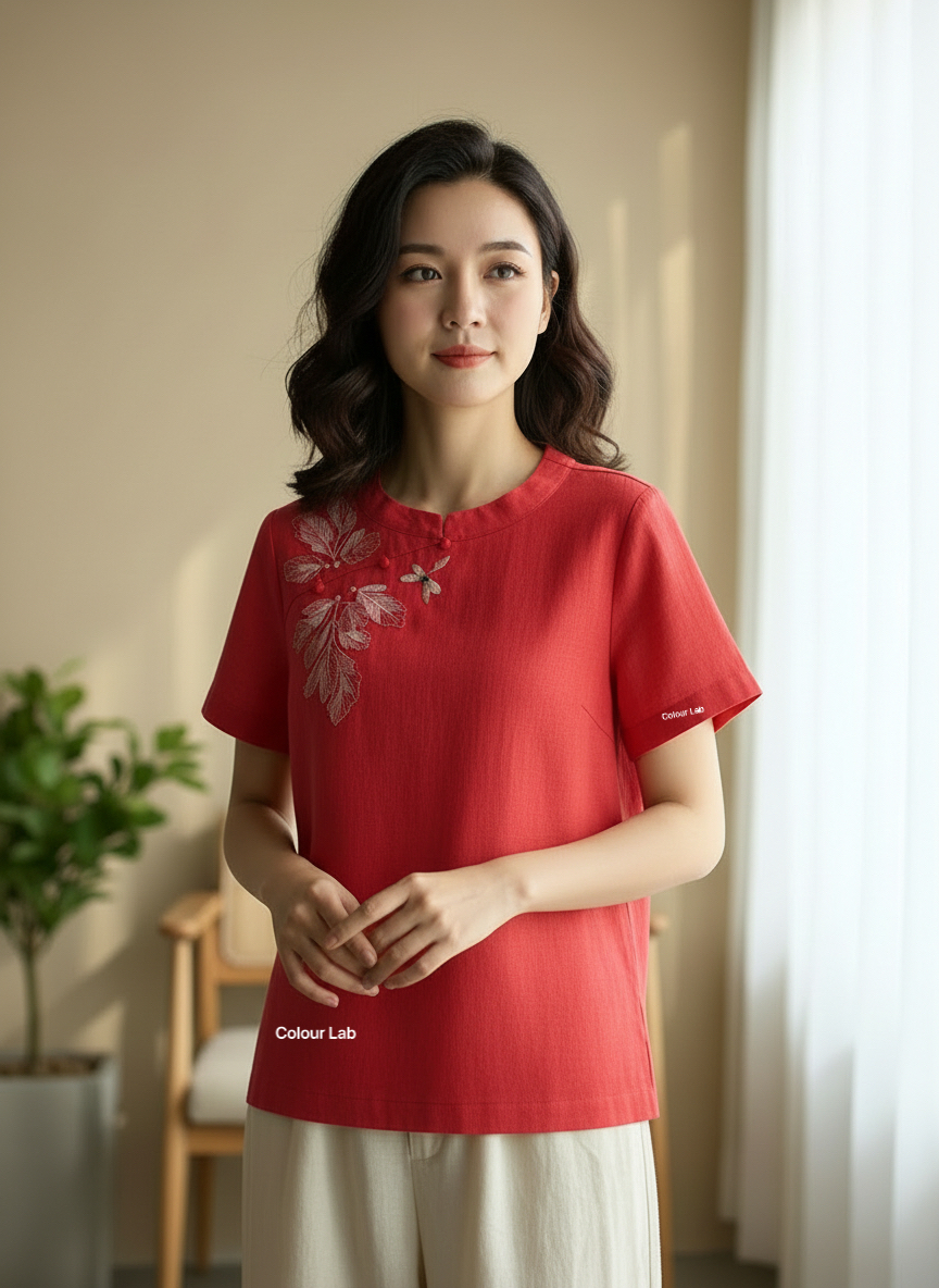 CNY Premium Linen Embroidered Tops